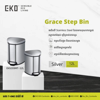ចំណុះ 12Lទំហំ 27.2x29.2xH42.5cmពណ៌ប្រាក់