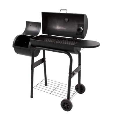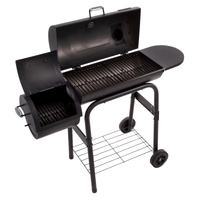 Obtenga una experiencia tradicional de ahumar y asar a la parrilla con el ahumador Offset 430 de American Gourmet® de Char-Broil®. Este ahumador cuenta con una chimenea vertical con amortiguadores ajustables, un medidor de temperatura y una cámara de combustión desplazada para avivar el fuego sin perder calor. Las rejillas de cocción revestidas de porcelana son fáciles de limpiar y los mangos se mantienen fríos al tacto.