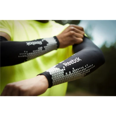 | Compression garments are typically used to assist in blood circulation, reduce blood lactate concentration during running and control the amount of muscle oscillation that results from pounding during running. The Reebok Compression Arm Sleeve, available in small, medium, large and extra large sizes (sold separately), is designed to help you perform at your best by increasing oxygen and blood flow, enabling your muscles to recover quickly after running. The sleeve's compression fit contours to your arm shape for maximum muscle support and its stretch bonded cuffs keep it secure throughout your run. The inner breathable fleece of the sleeve successfully wicks away sweat, yet provides warmth in cold weather too. For increased visibility, the Reebok Arm Compression Sleeve features a highly reflective and stylish honeycomb design. Compression Arm Sleeve XL Compression fit contours to the body for maximum muscle support Highly reflective honeycomb design for increased visibility Inner breathable fleece wicks away sweat and provides warmth in cold weather Stretch bonded cuffs for a secure fit