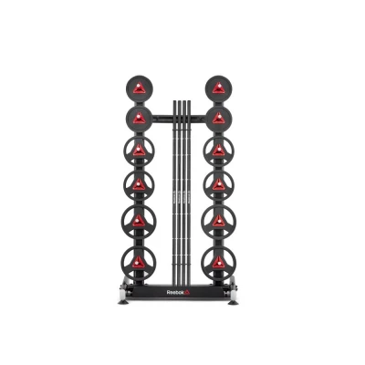 | • Made from tough steel with metal feet, the rack holds your plates, bars and collars whilst allowing easy access to get your classes moving. |