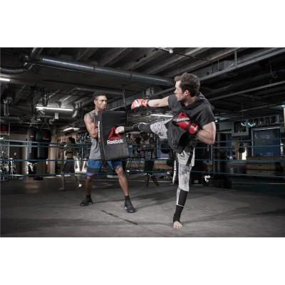 | A key piece of fitness equipment for martial arts and combat training. The Reebok Combat Strike Pad is designed for blocking punches, elbows, kicks and knee strikes and is constructed with high density foam for ultimate impact protection. It features durable handles to ensure precise control through every hit and the shield’s ergonomic curve design makes it ideal for developing leg techniques and upper cuts, offering more varied angles for the workout. This one size combat shield is lightweight yet tough, whilst benefitting from great absorption quality. ◾Dimensions: 71 x 38 x 13cm ◾Hard wearing straps for precise control ◾High density foam for impact protection ◾Premium synthetic leather for long lasting durability and functionality ◾Ultimate training shield for boxing and combat sports