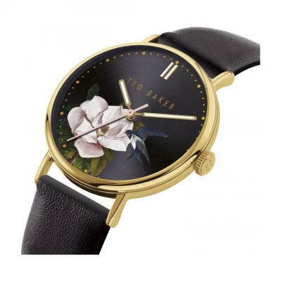Ted Baker Phylipa Flowers BKPPFF910 is a fashionable timepiece that will ideally complement women’s wear. The watch has a reliable and battery-powered quartz movement. The steel multicolour case has a movement inside. A black strap made of leather perfectly matches the case and fits a wrist. The multicolor dial is covered by a mineral crystal, renowned for its high resistance to shocks and scratches caused during everyday use. The 50m water-resistant watches provide excellent protection against wetting. Ted Baker BKPPFF910 is covered by the manufacturer’s warranty and is packed in the original box.